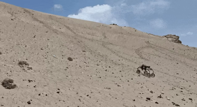 在青海格尔木海拔 3500 米的戈壁滩上,一阵风吹过,卷起碎石打在金属外壳上噼啪作响。一台 “长相特别” 的机器正在缓缓移动。它既有车轮,又有类似动物的 “腿”,遇到半米高的岩架时,车轮轻轻收起,“腿”一抬就跨了过去;进入平坦沙地,“腿”又藏了起来,车轮飞速转动,速度比普通人跑步还快。