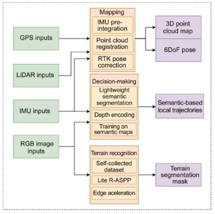 其中,地形分类系统是感知系统的重要组成部分。研究人员收集了900多张高原典型地形的图像,包括水坑、泥地、垂直障碍、碎石、台阶、草地、沙地和沟渠等8个类别。通过这些数据训练出的深度学习模型,使机器人能够以87.5%的准确率识别不同地形,从而采取相应的运动策略。