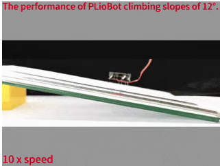 改变驱动信号即可实现后退、左转、右转等方向控制。测试中,该机器人在玻璃、亚克力、海绵等不同粗糙度表面均能移动,可爬升最大 12 度的斜坡,并在背负 1.4 克载荷的条件下,以每秒 8.56 厘米的速度通过长 16 厘米、宽 3 厘米的隧道,以及完成 L 形弯道的连续行进。