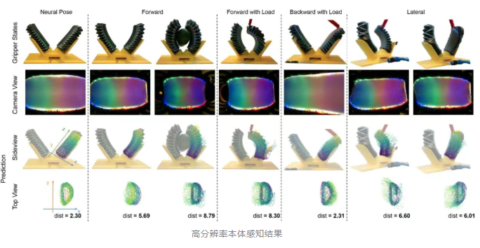PneuGelSight的本体感知与触觉感知均以光学图像为基础,再通过算法将二维图像转化为三维信息。两者各有侧重又相互配合,赋予软体手指精准的交互能力。