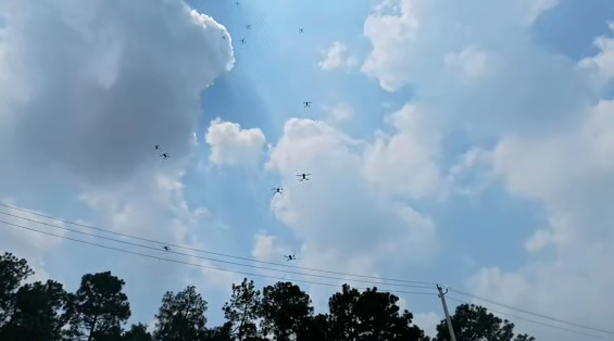 大规模无人机模拟“蜂群来袭