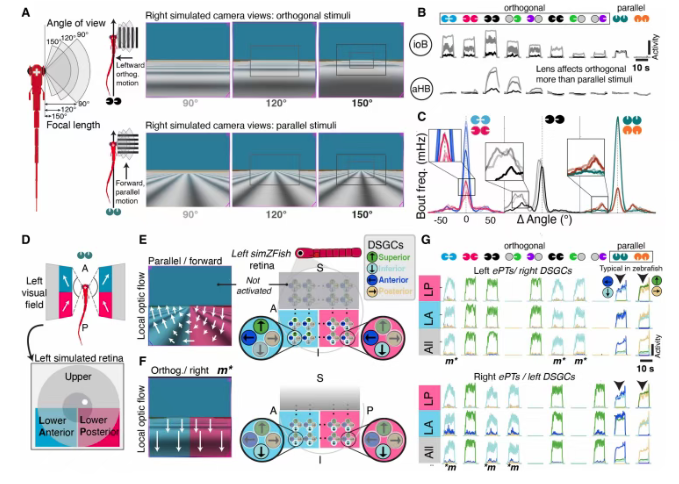 该研究有一个关于鱼眼的光学特性的发现。通过给simZFish装配不同焦距的镜头(90°、120°、150°视角),研究人员发现视角会显著影响神经活动和行为表现。