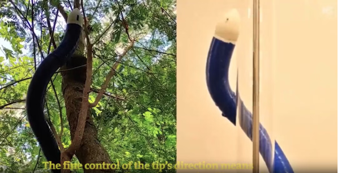在自然界里,植物藤蔓凭借柔韧与生长能力,穿过缝隙、攀附高处,最终抵达难以企及的地方。受此启发,机器人研究者发明了藤蔓机器人这一可以通过顶端外壁材料翻转实现本体延展、几乎不会产生反力的柔性机器人。